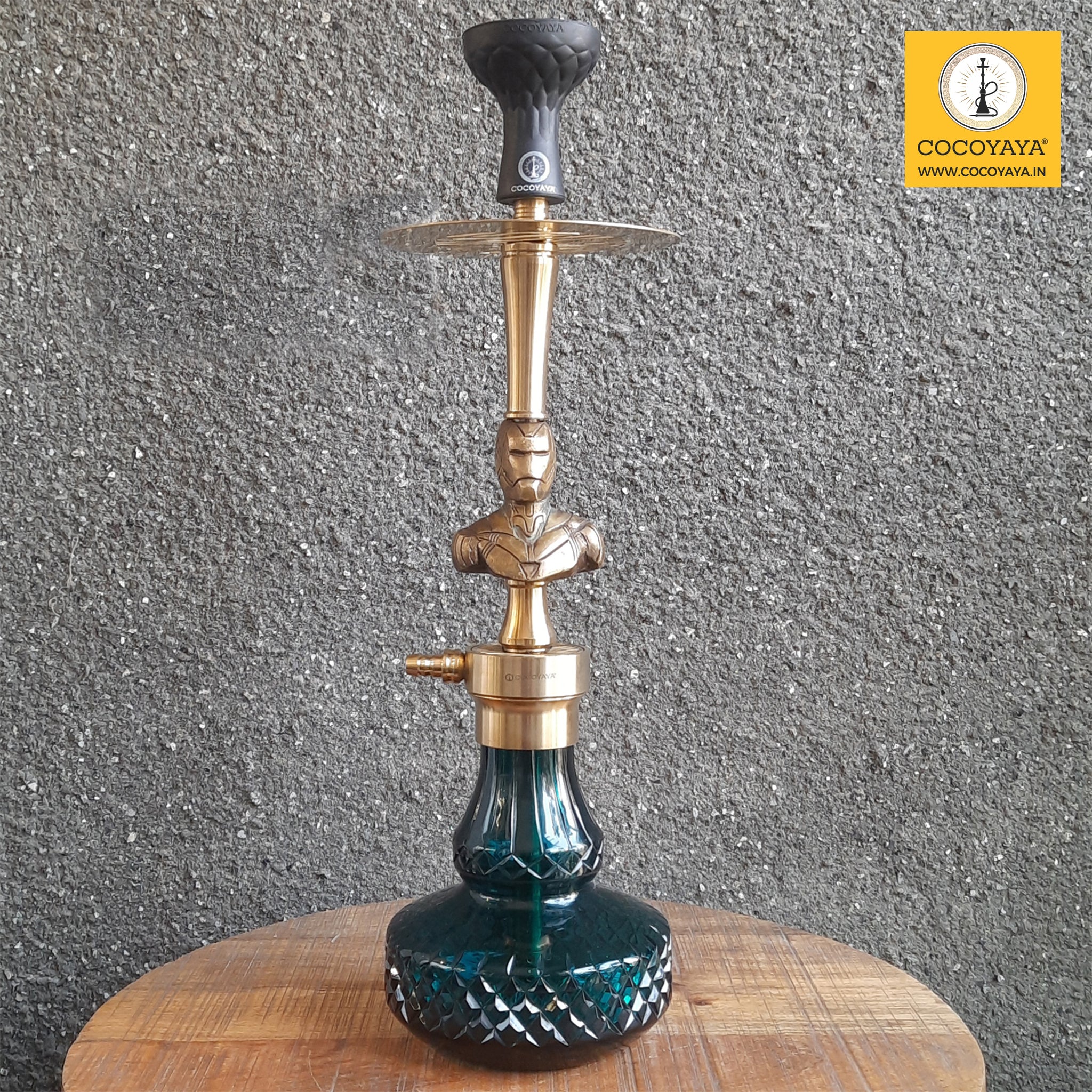 COCOYAYA Congo Series Iron man Hookah Golden (Dark Aqua Base) With Bag